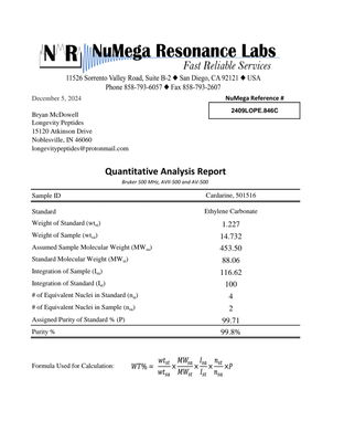 Please be advised: All products provided by Longevity Peptides are intended for research purposes only, not for human consumption. They are not approved by the Food and Drug Administration (FDA) for ingestion, injection, or medical treatment. By purchasing, you acknowledge that you will use these products responsibly and in accordance with all applicable laws and guidelines, in a laboratory setting with qualified professionals.